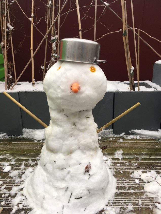 Der Schnee vom Balkon reichte gerade so. 😅 Lego-Augen, Bambus-Strohhalm-Arme, Ikea-Kinderküchen-Hut 😁😁😁